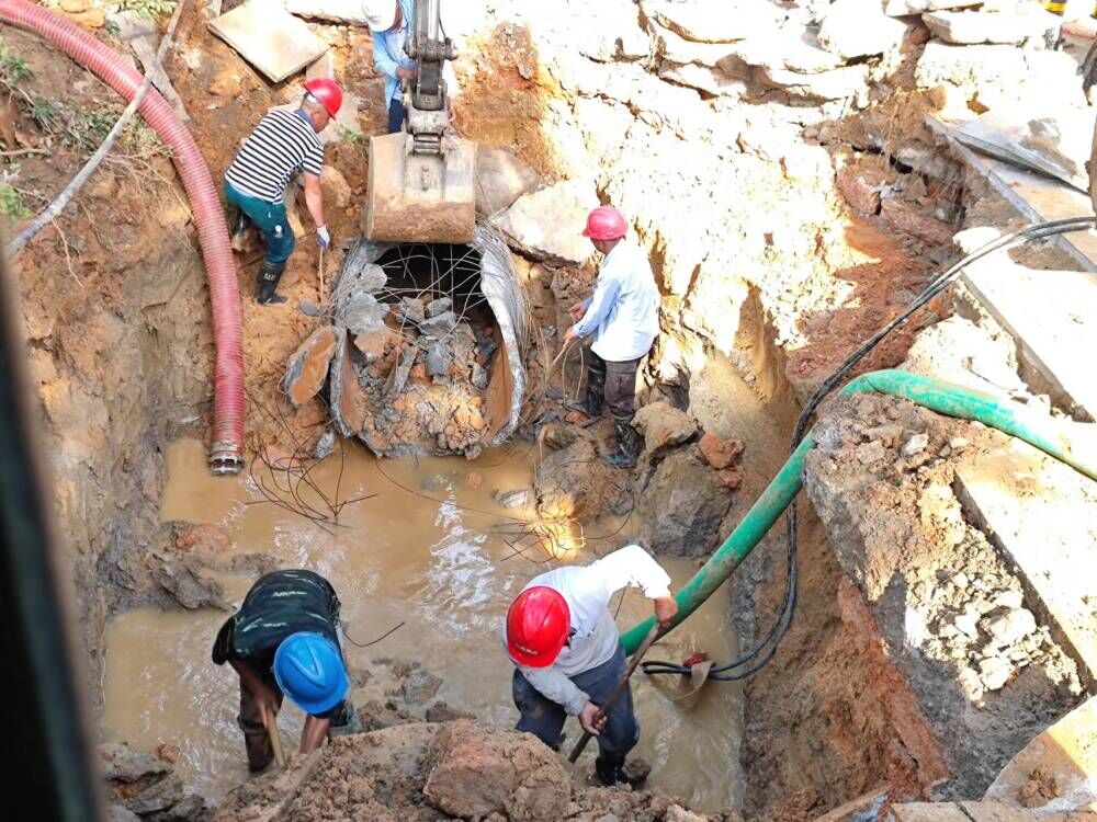 經(jīng)過(guò)15個(gè)小時(shí)的連續(xù)奮戰(zhàn),次日凌晨1點(diǎn)完成搶修任務(wù),乾坤大道沿線實(shí)現(xiàn)通水。