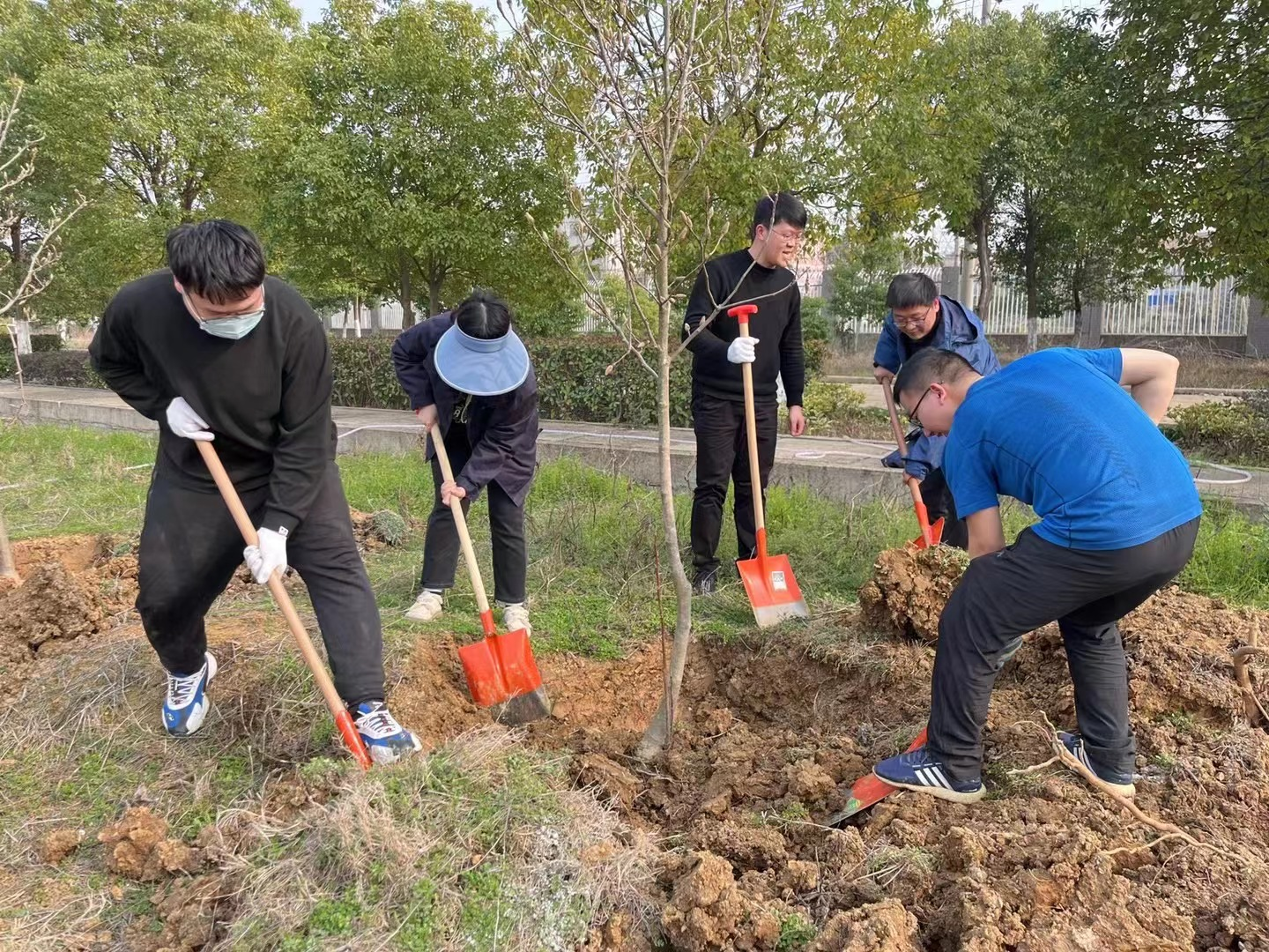 志愿者們一行三十余人,來到了八一水廠院內(nèi)待種植綠化苗木的空地?;顒?dòng)開始后,大家分工合作,鏟土入坑、扶苗培土,干得熱火朝天。