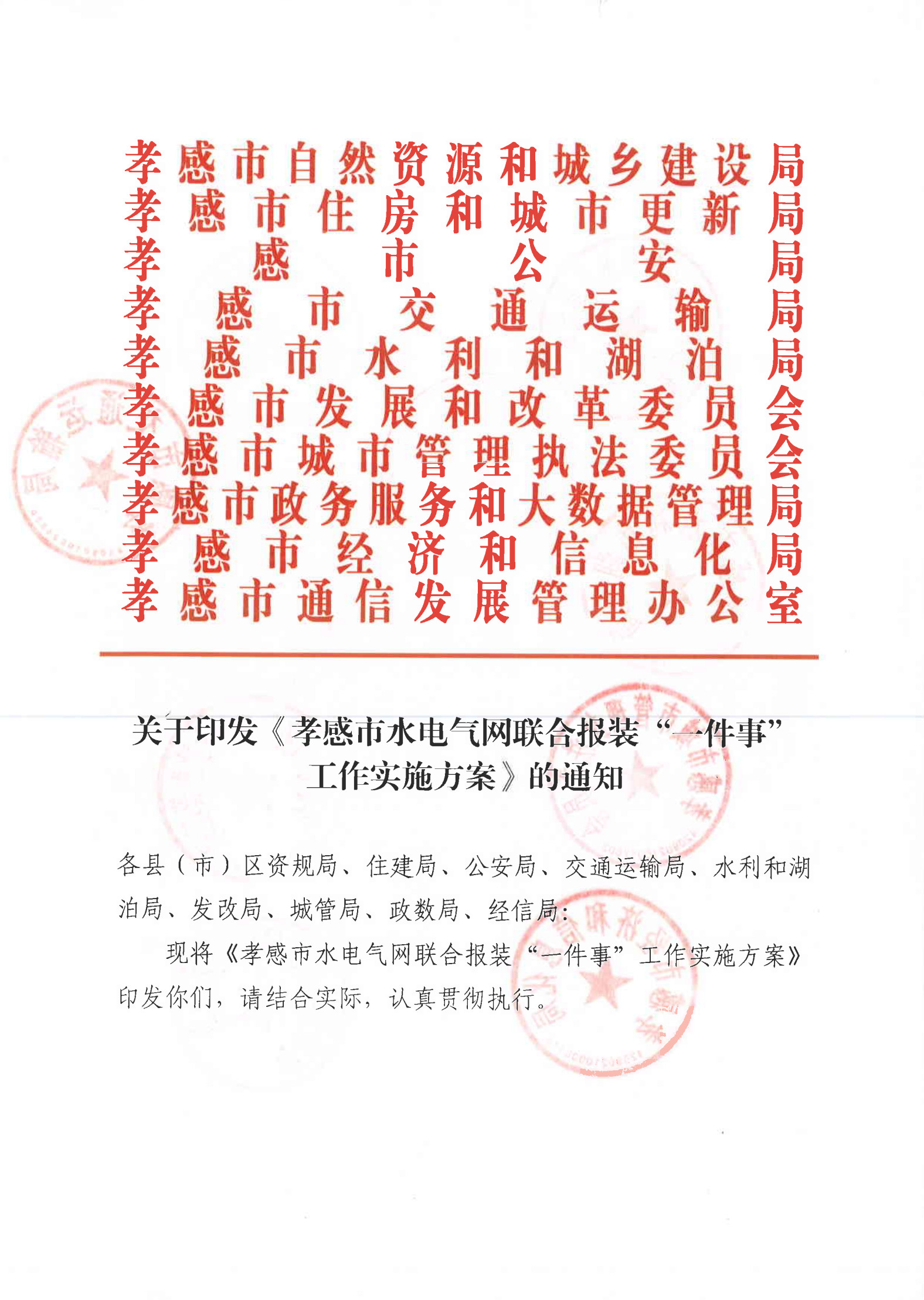 關(guān)于印發(fā)《孝感市水電氣網(wǎng)聯(lián)合報(bào)裝“一件事”工作實(shí)施方案》的通知