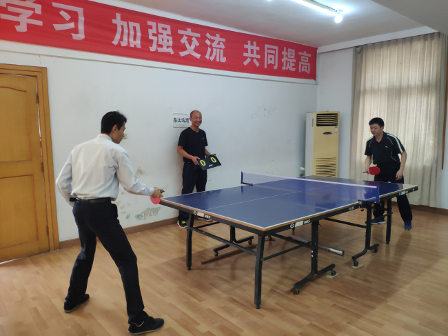 此次比賽分設(shè)男子單打、女子單打,團(tuán)體比賽項(xiàng)目。18日上午隨著一聲哨響比賽正式開始,大家迅速進(jìn)入狀態(tài),爭奪十分激烈,球桌上不斷出現(xiàn)精彩對(duì)決,直拍、橫拍、扣球、旋轉(zhuǎn)球、弧線球等精彩扣殺、絕妙回?fù)蹙实爻尸F(xiàn)在賽場上,伴隨拉拉隊(duì)們的熱烈歡呼與吶喊,現(xiàn)場氣氛一再升溫。團(tuán)體冠亞軍決賽更是扣人心弦、高潮迭起,吶喊聲和歡呼聲此起彼伏,興奮的“好球”聲不斷。比賽時(shí)間雖短,但大家感受到了參與的快樂、享受著付出的愉悅、品味著成功的喜悅。